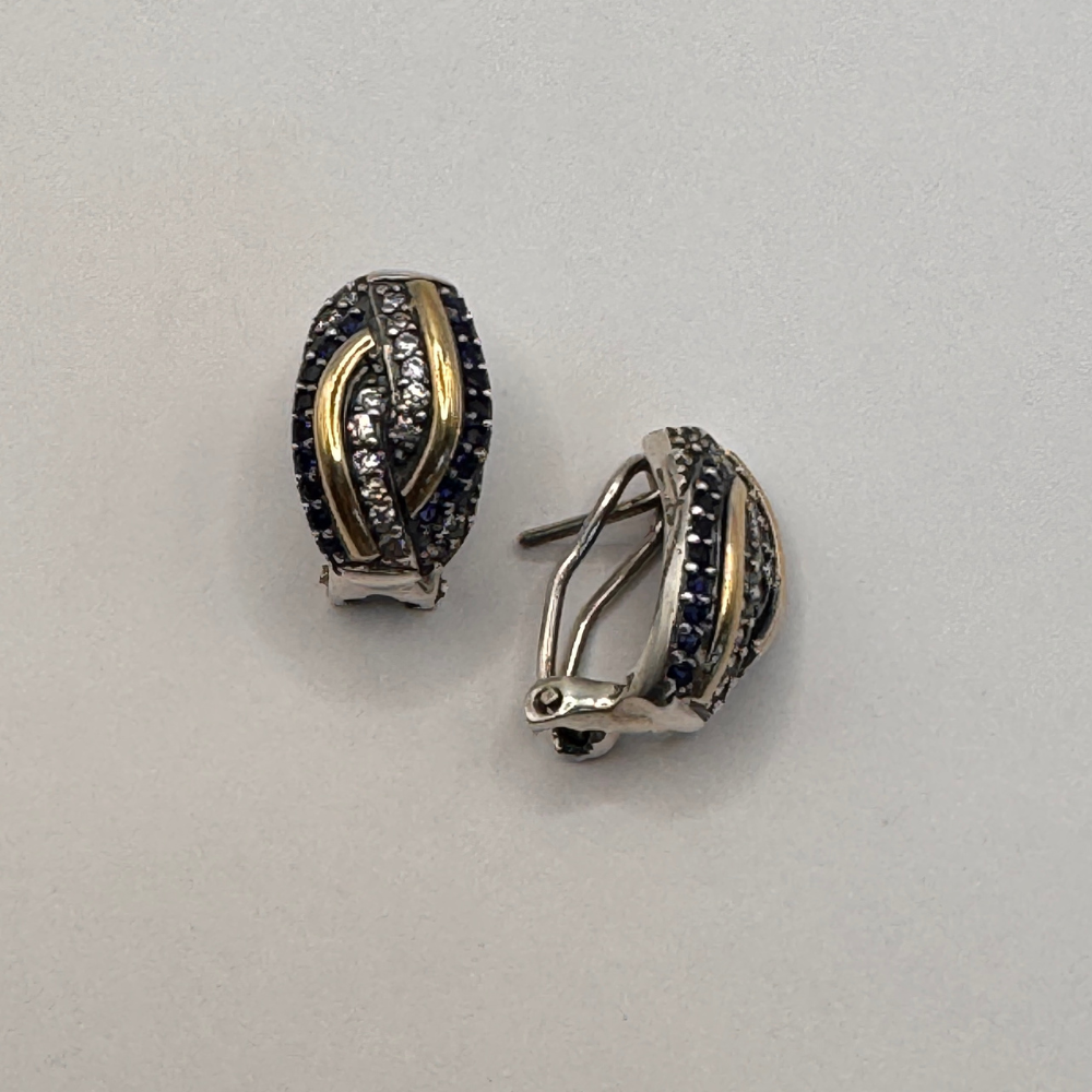Aretes modernos en oro plata con detalle tipo zafiro y diseño en espiral. Brillantes, sofisticados y llenos de significado.