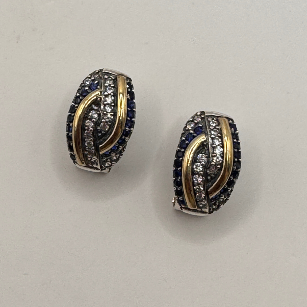 El detalle tipo zafiro aporta un brillo azul profundo lleno de significado: esta piedra es símbolo de intuición, protección, claridad y sabiduría, atributos asociados desde la antigüedad a la realeza y la espiritualidad. El contraste entre el azul intenso y el acabado bicolor oro–plata crea una pieza moderna, versátil y visualmente poderosa.