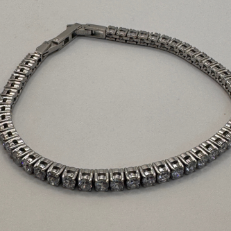 Este diseño surgió como un símbolo de fuerza y equilibrio —una pieza que permanece firme incluso en movimiento— por eso la pulsera tennis representa disciplina, enfoque y belleza en cada detalle. Las piedras aportan un destello delicado que ilumina la muñeca con elegancia sin esfuerzo.