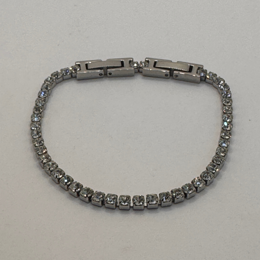 Una pulsera clásica y elegante con brillo continuo tipo tennis, elaborada en oro laminado 18k. Sofisticada, femenina y perfecta para cualquier ocasión.